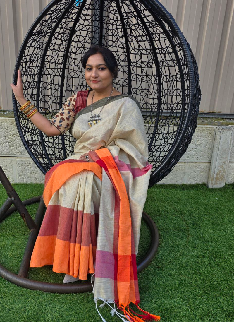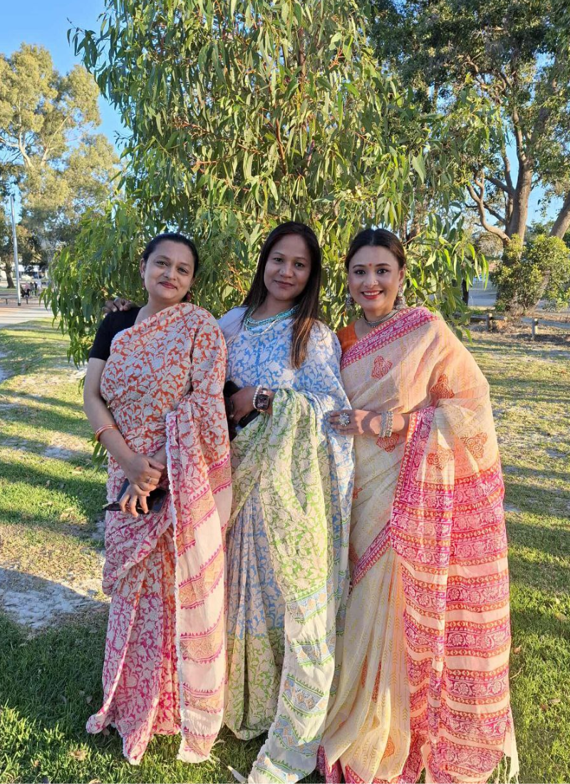 $75.00 AUDDhanwari Silk Saree with Floral Print & Zari Border + Contrast Blouse