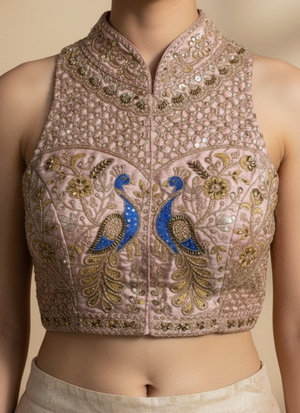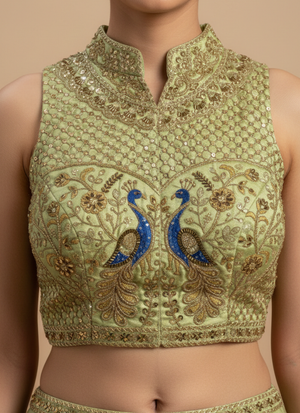 Peacock Silk Party Blouse with Hand Work