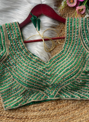 Perfect for weddings, receptions, and festive occasions, this blouse pairs beautifully with sarees, lehengas, and skirts. Its handcrafted detailing makes it a statement piece for women seeking premium ethnic wear.