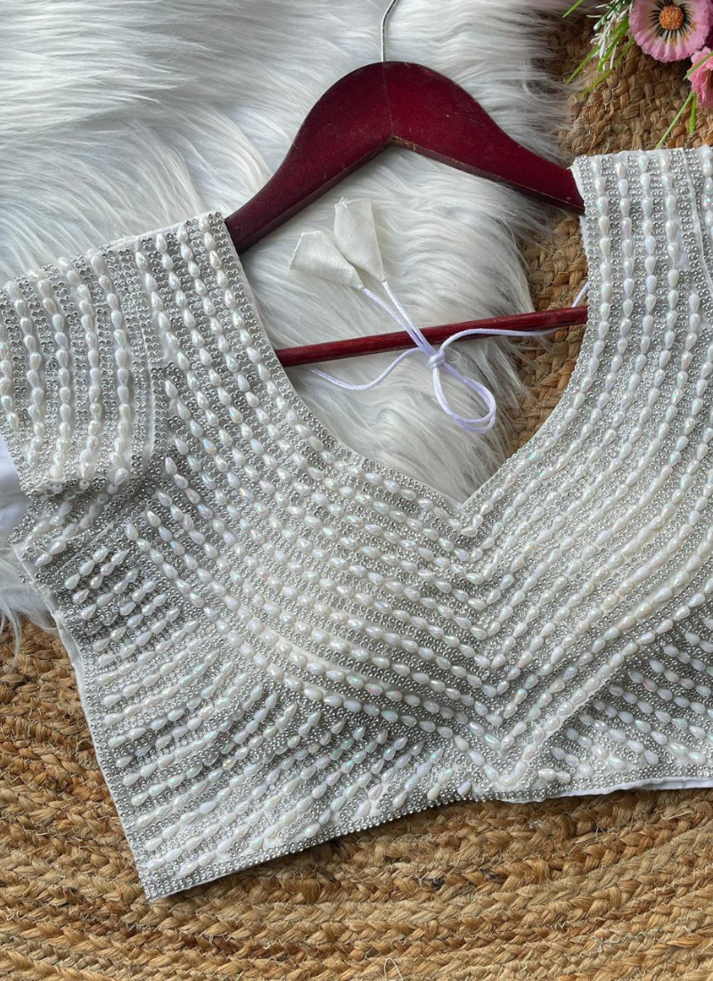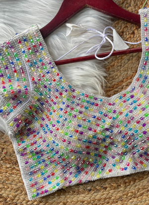 Pure Silk Handcrafted Blouse with Pearl & Beads Work