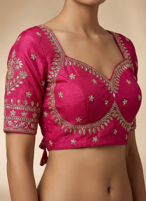 • Royal Jodha style bridal blouse in Vichitra silk.