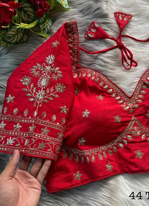 Available in 8 rich colors, this blouse offers versatility for different bridal looks, from classic reds and maroons to modern pastels and jewel tones. Its plus‑size tailoring (44″ ready, alterable up to 50″) ensures inclusivity, making it a perfect choice for brides seeking both style and comfort.