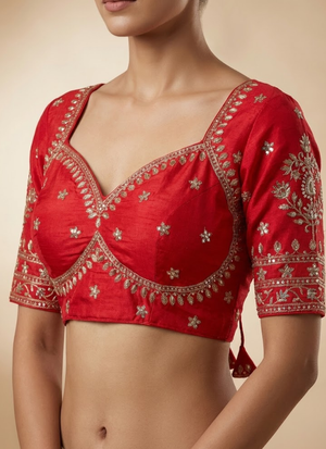 • Design: Bridal blouse, padded, handmade hooks, latkans, back‑open style.