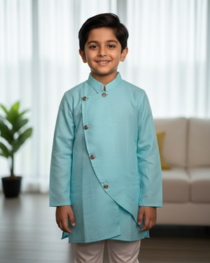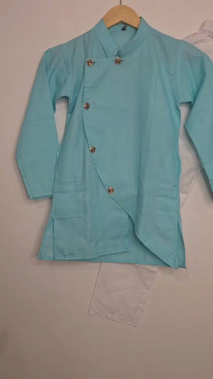 Color: Firoza kurta with contrasting white pyjama