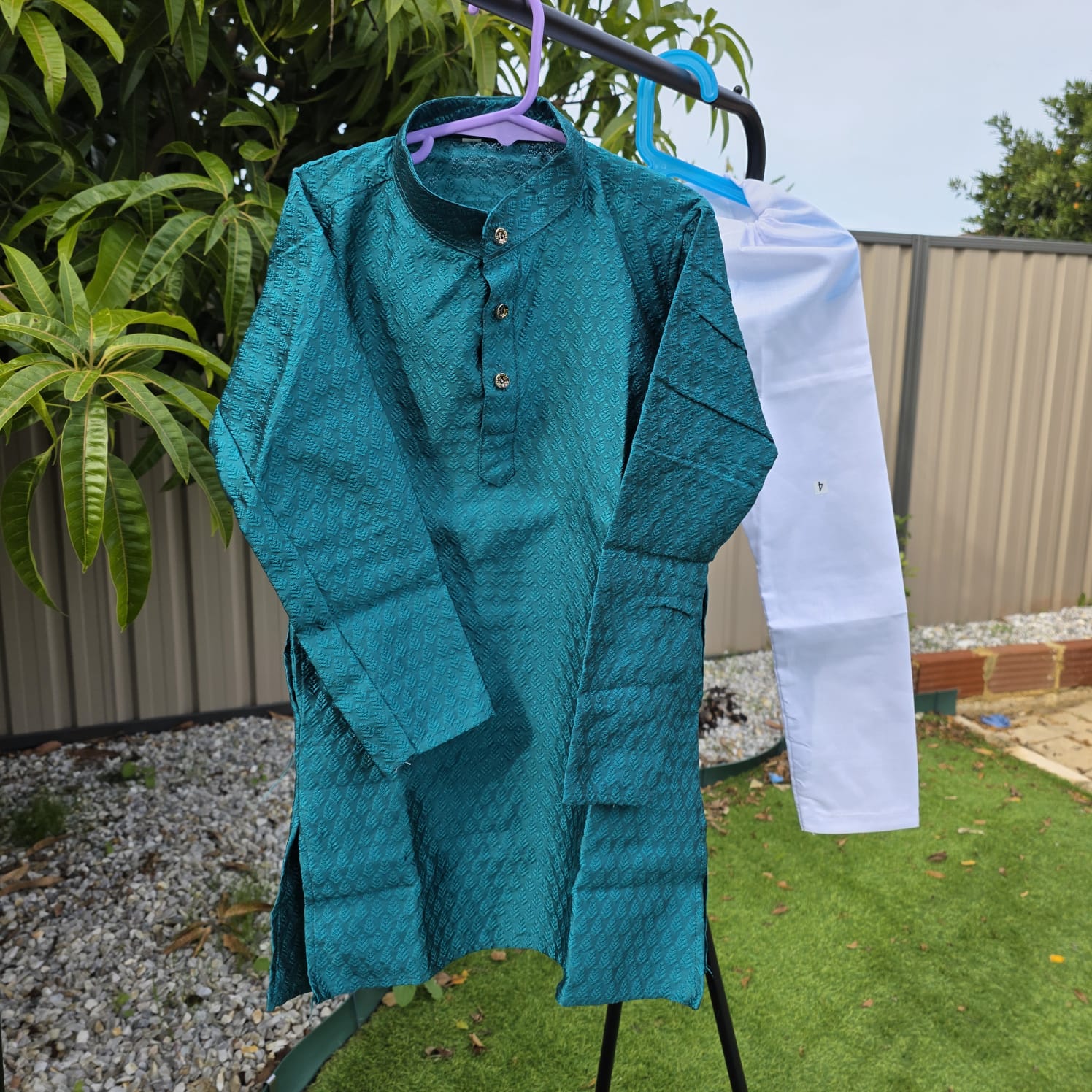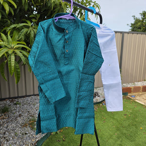 Celebrate tradition with a modern twist. This sea green kids kurta pajama set is the perfect choice for parents who want their children to look stylish, feel comfortable, and stay connected to their roots. you can see more