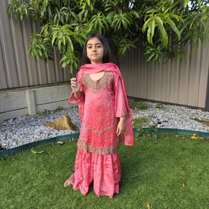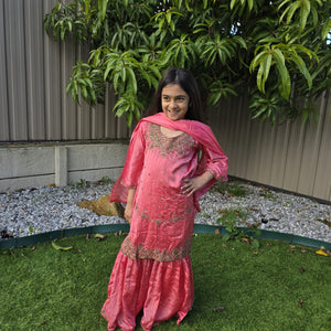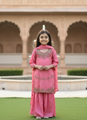 This sharara suit for kids is more than just an outfit—it’s a celebration of heritage, beauty, and youthful elegance. Add it to your cart and let your child shine in silk sophistication.