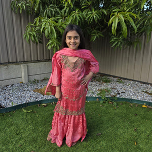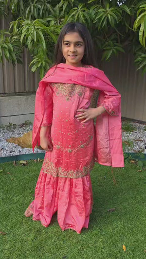 Let your little one embrace tradition in style with this elegant kids sharara suit, crafted from premium silk and tailored for festive occasions. Whether it’s a wedding, Eid, Diwali, or a cultural celebration, this outfit offers the perfect blend of sophistication and comfort for young girls.