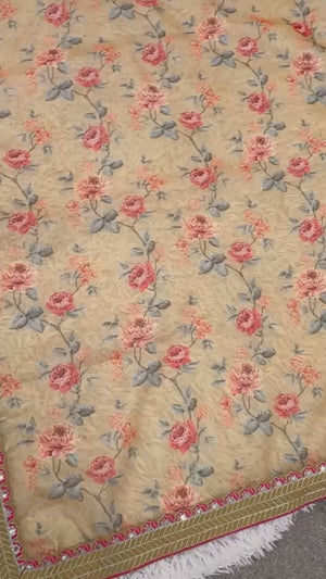 • Dupatta Fabric: Heavy tissue silk with digital print and lace border 💫