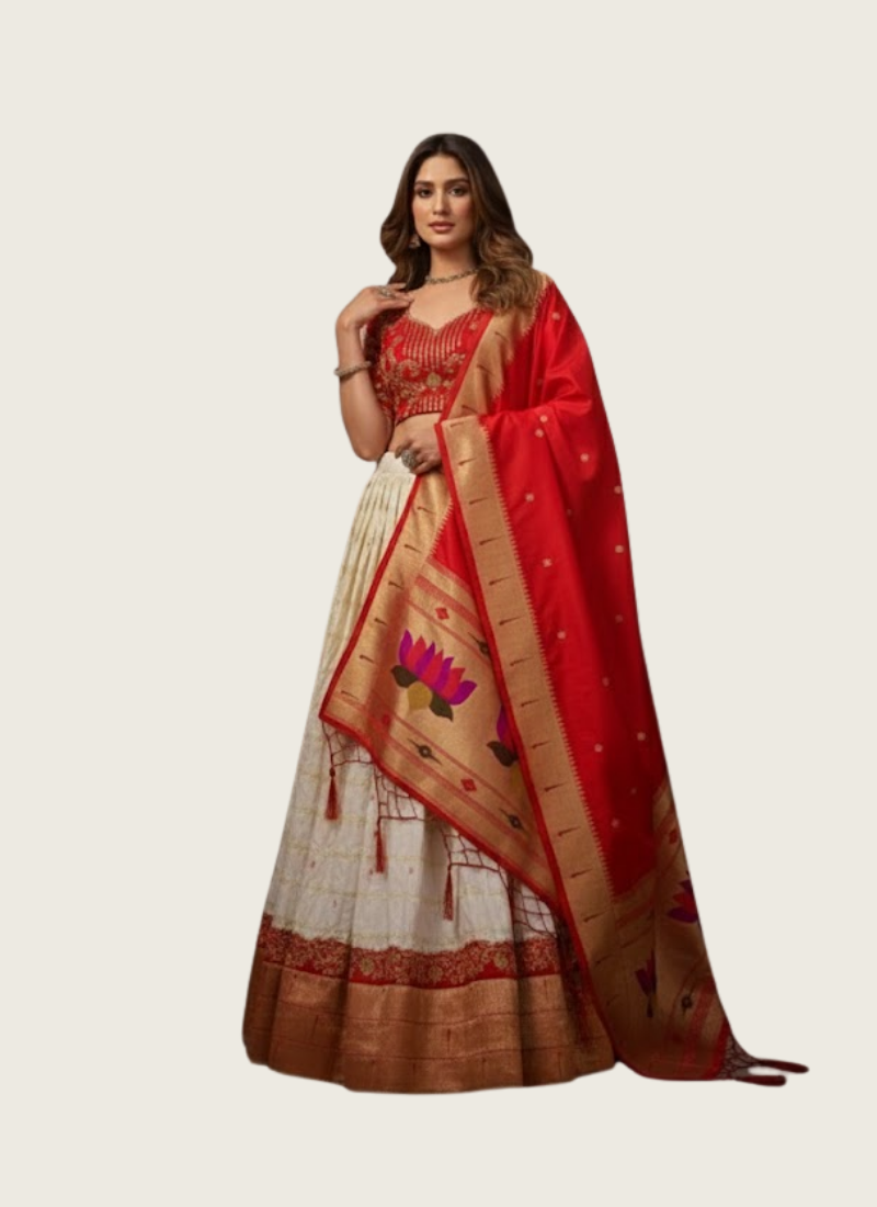 This paithani silk lehenga choli set is the perfect blend of tradition and trend. Whether you’re attending a wedding, celebrating a festival, or dressing up for a party, it ensures you look stylish, confident, and radiant.