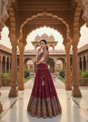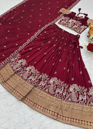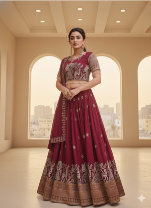 Step into timeless elegance with this Pure Vichitra Lehenga Choli Set, beautifully designed with heavy embroidery, sequence, and thread work. Crafted for South Asian women who love fashion that blends tradition with a trendy vibe, this outfit is perfect for weddings, festive occasions, and cultural celebrations.