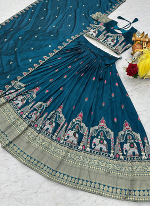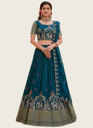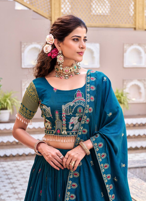 Pure Vichitra Embroidered Lehenga Choli Set