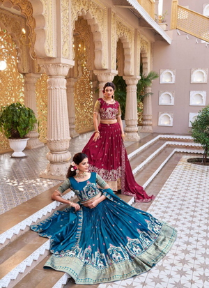 Celebrate tradition with a modern touch in this Pure Vichitra Lehenga Choli Set, crafted with heavy embroidery, sequence, and thread work. Designed for South Asian women who love fashion that blends elegance with comfort, this set is perfect for weddings, festive occasions, and cultural gatherings.