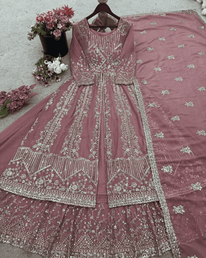 ThisIndian Anarkali gown set is a luxurious blend of elegance and tradition, crafted for women who love timeless silhouettes with modern flair.Made fromcrunchy silk and adorned withheavy embroidery andsequence work, thisfloor length Anarkali gown is ideal for weddings 💍, festive occasions 🪔, and cultural celebrations 🎉. Whether you're shopping for agownAnarkalior a regalanarkali gown for wedding events, this fully stitched ensemble delivers premium style and comfort.
