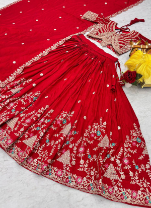 This vichitra lehenga choli set is the perfect blend of tradition and trend. Whether you’re attending a wedding, celebrating a festival, or dressing up for a party, it ensures you look stylish, confident, and radiant.