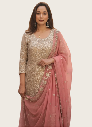 Embrace the beauty of South Asian tradition with this exquisite Pakistani Salwar Kameez set, tailored for women in Australia who love timeless fashion with cultural flair. Made from soft and breathable chiffon fabric, this outfit features delicate Gota Patti embroidery, making it a perfect choice for festive occasions, weddings, or family gatherings.