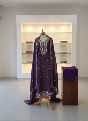 Dark Purple Silk Salwar Suit with Mirror Work Dupatta