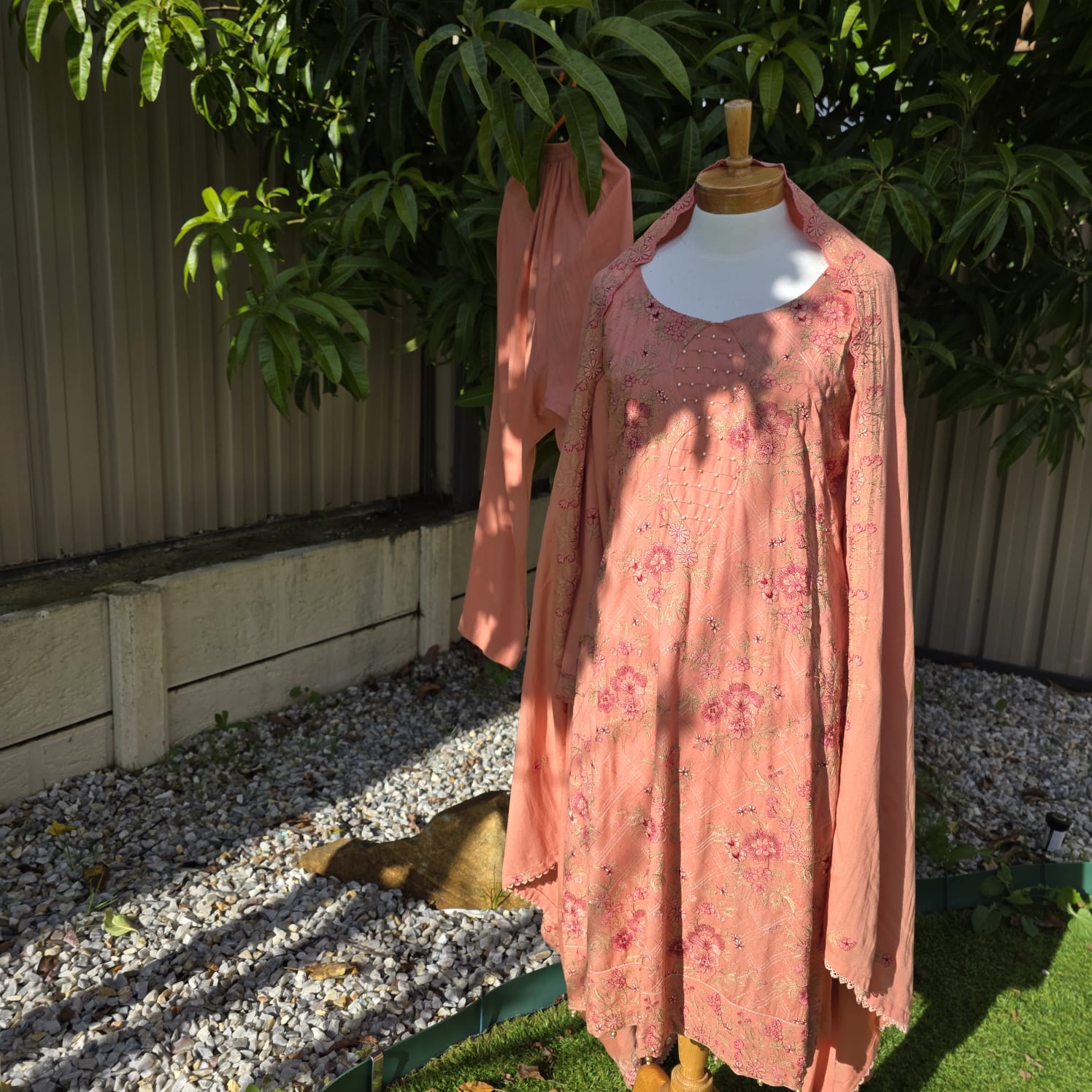 Pair either variant with statement earrings and embroidered juttis for a flawless festive look. Whether you're dressing for celebration or layering for a chic everyday style, this 3-piece Pakistani salwar suit makes tradition effortlessly wearable.