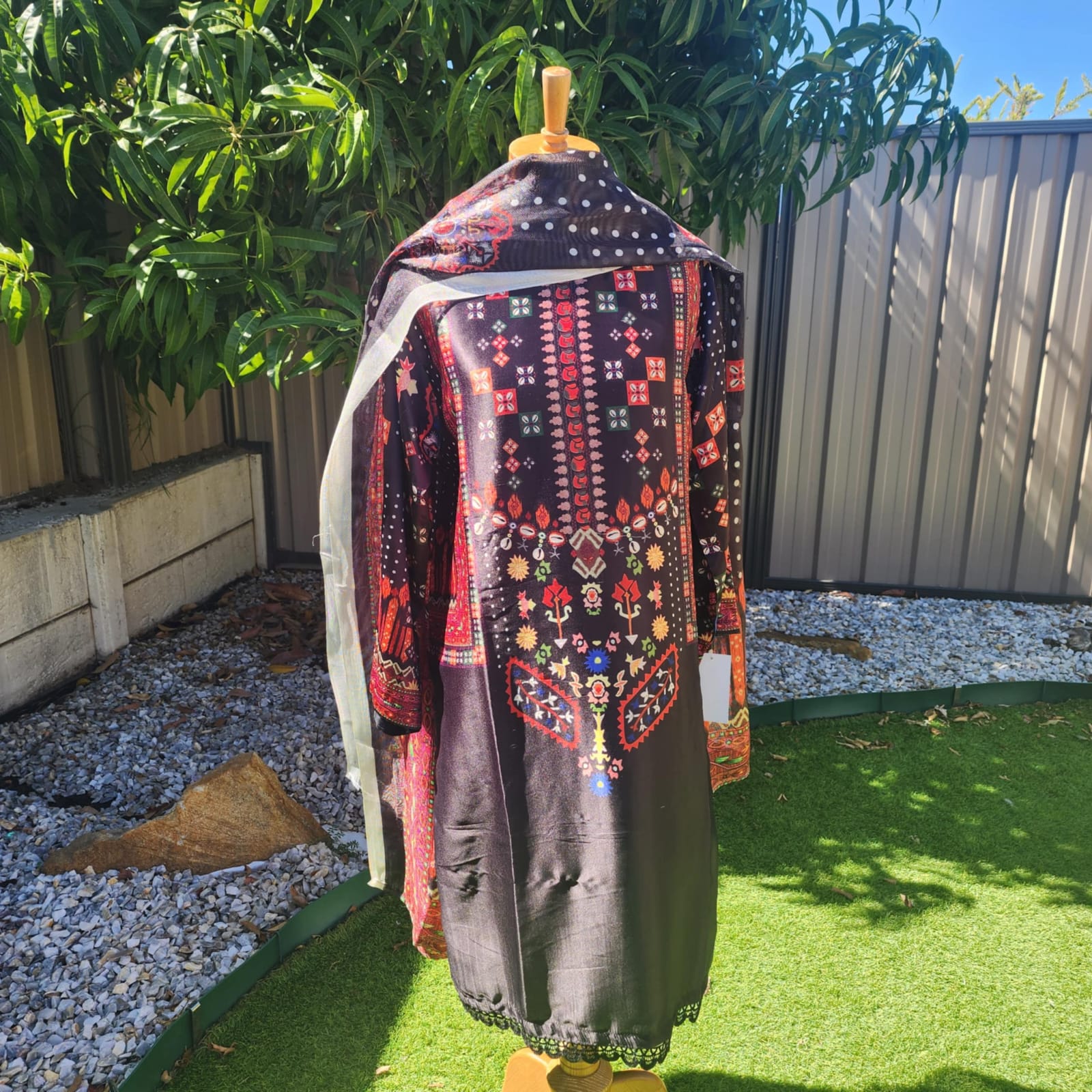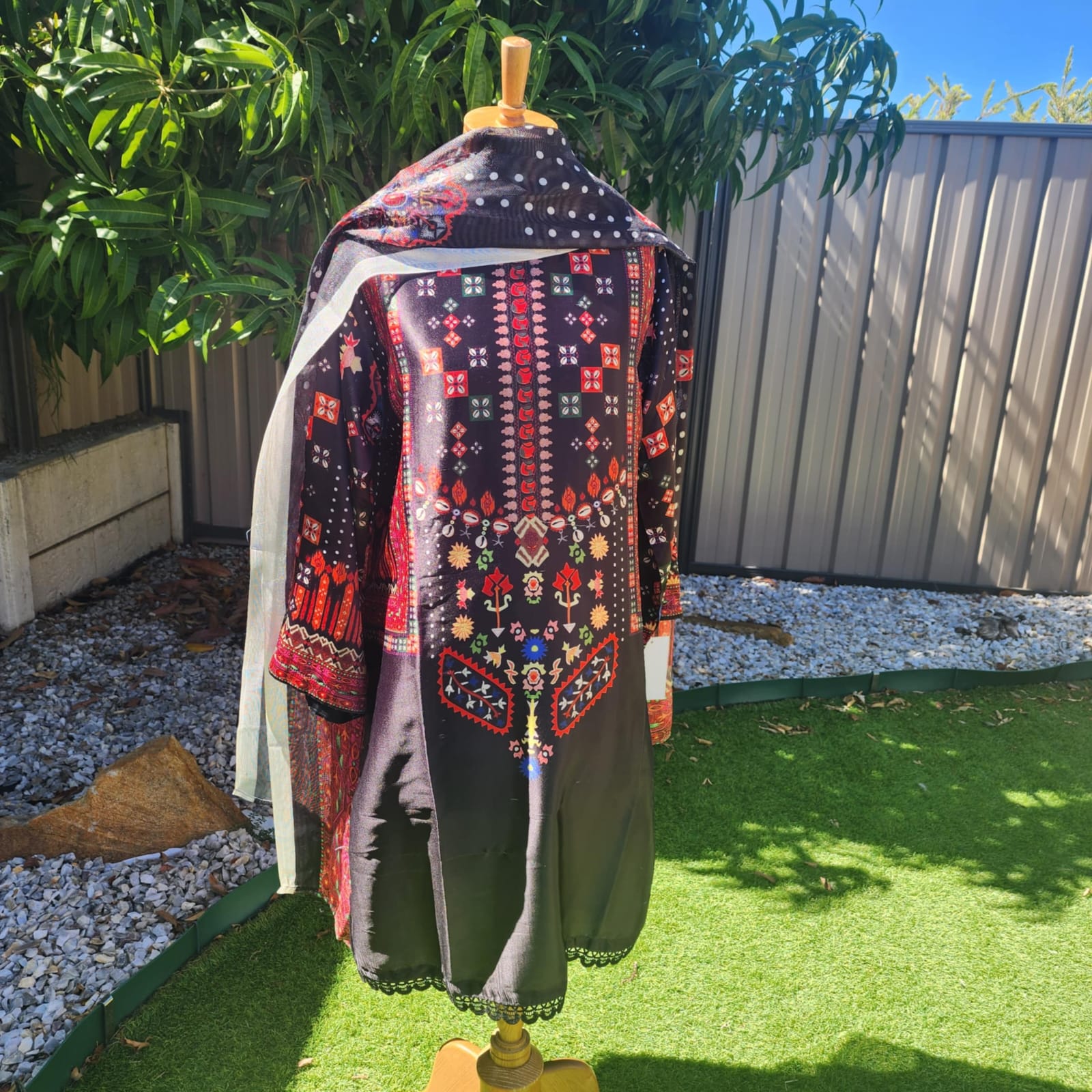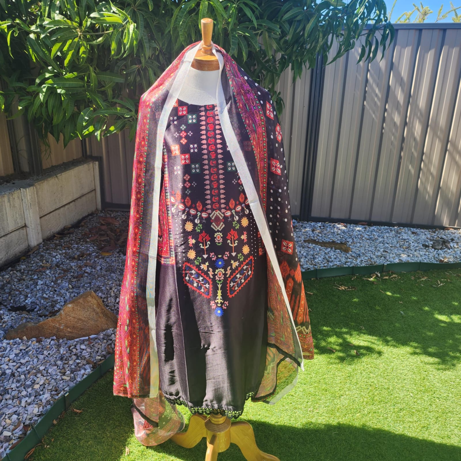 Pakistani Satin 3-Piece Salwar Suit – Elegant Kota Dupatta Set