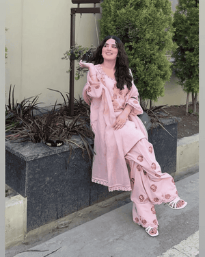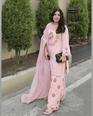 This elegantfarshi salwar suit is a celebration of traditional South Asian fashion with a modern twist. Crafted frompure natural crepe, the top featuresfancy belly sleeves and intricate embroidery, while the matchingfarshi plazzo adds a regal touch with its flowing silhouette. Paired with afaux georgette dupatta featuring embroidered lace borders, this fully stitched set is ideal for weddings 💍, festive occasions 🪔, and cultural gatherings 🎉. Whether you're shopping forfarshi salwar suits or a gracefulfarshi shalwar outfit, this ensemble delivers premium style and comfort.