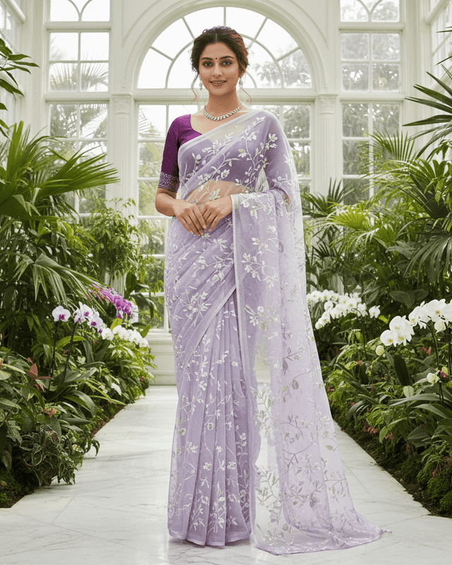 $97.00 AUDTissue Saree – Elegant Silver Mari Work