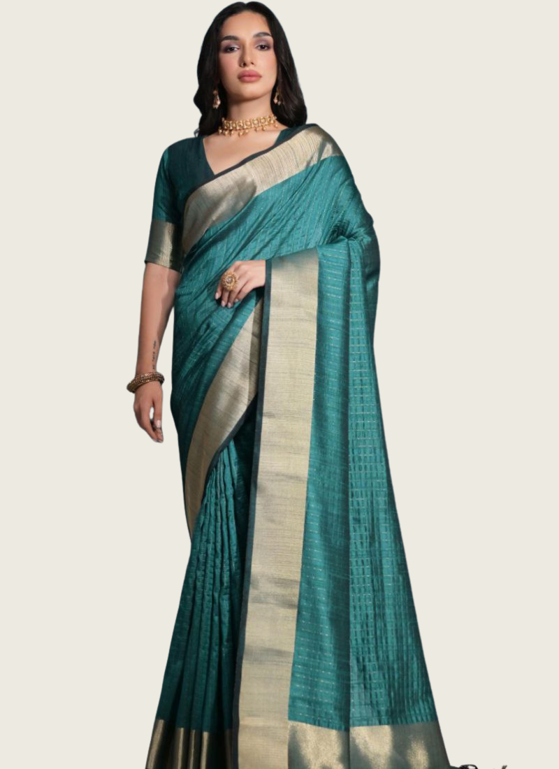 $69.00 AUDTeal Green Banarasi Silk Saree with Zari Weaving, Border & Pallu + Blouse Piece