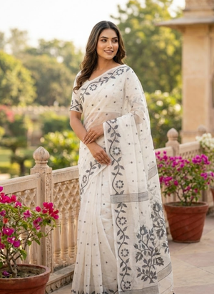 Ablack & white tantuz saree that blends tradition with modern elegance