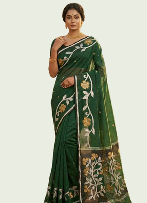 Abottle green tantuz saree that blends tradition with modern elegance