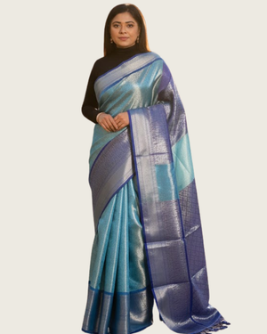 Thistissue saree with silver mari work is a timeless ethnic piece that exudes elegance and sophistication. Crafted with shimmering tissue fabric and adorned with delicate silver mari embroidery, it is perfect for weddings 💍, festive occasions 🪔, and cultural gatherings 🎉.