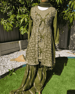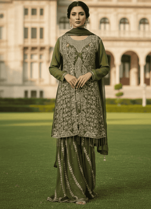 Step into refined elegance with thisolive green Pakistani 4-piece dress — a perfect blend of traditional artistry and modern sophistication. Ideal for weddings 💍, festive celebrations 🕌, and cultural gatherings 🎉, this set is designed for South Asian women who appreciate timeless style.