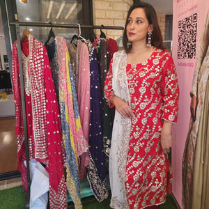Celebrate tradition with a modern twist in this stunning Pakistani Salwar Kameez set, crafted from soft chiffon fabric and adorned with intricate Gota Patti embroidery. Designed for women who value cultural elegance, this outfit is perfect for festive occasions, weddings, and special gatherings across Australia.