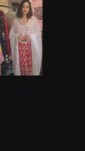 The kameez features a graceful 46-inch length and a 44-inch chest, offering a flattering and comfortable fit. Paired with a 36.5-inch pant, the ensemble ensures ease of movement while maintaining a refined silhouette. The matching chiffon dupatta, embellished with Gota Patti and a shimmering zari border, adds a regal touch that completes the look.
