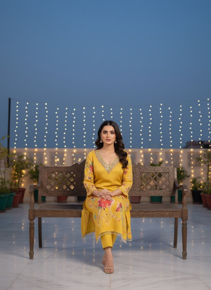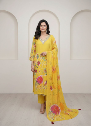 ThisPakistani straight silk salwar suit is a premium ethnic ensemble designed for elegance and festive charm. Crafted from luxurious silk fabric, it featuresmirror work and stone embellishments on the dress and dupatta, blending traditional artistry with modern sophistication. Perfect for weddings 💍, festive occasions 🪔, and cultural gatherings 🎉, this suit radiates regal appeal.