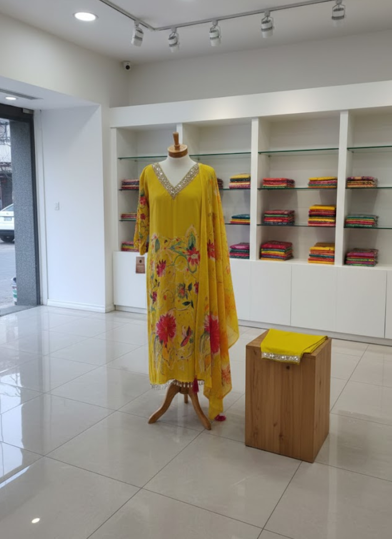 • APakistani silk salwar suit that blends tradition with modern elegance