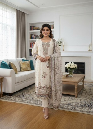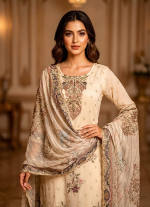 Thiswhite Jamie straight salwar suit is a premium ethnic ensemble designed for elegance and festive charm.Crafted withfloral print and embroidery, it comes with a flowingchiffon dupatta,blending traditional artistry with modern sophistication. Perfect for weddings 💍, festive occasions 🪔, and cultural gatherings 🎉, this suit radiates feminine grace.