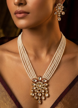 💡 Styling Tip: Pair thisKundan necklace set with artificial pearls with a pastel saree or lehenga for a radiant festive look 👑.