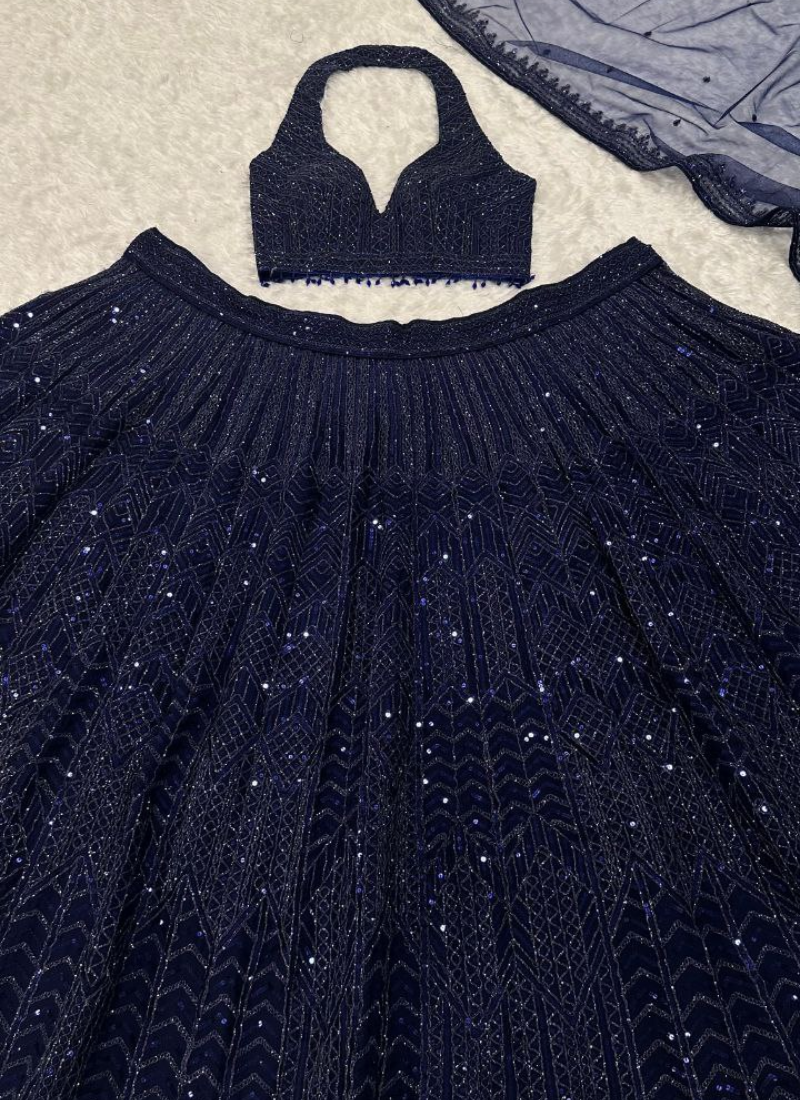 Thislehenga choli is designed for brides, wedding guests, and South Asian diaspora fashion lovers who want elegance with comfort. Made fromnet fabric, it is embellished with sequins and dori embroidery that sparkles beautifully. With a wide flair of 3.25 meters andcan‑can attached, this lehenga delivers a grand bridal look while staying lightweight and easy to wear.