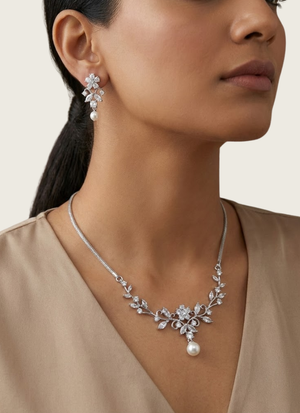 Idealnecklace and earring set for weddings and receptions.